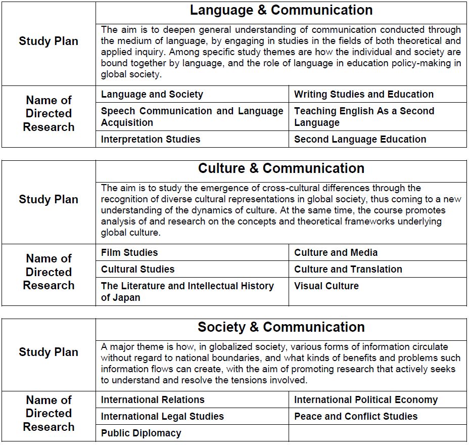 其中国際コミュニケーション研究科的三个大方向之下又有以下N种细分: