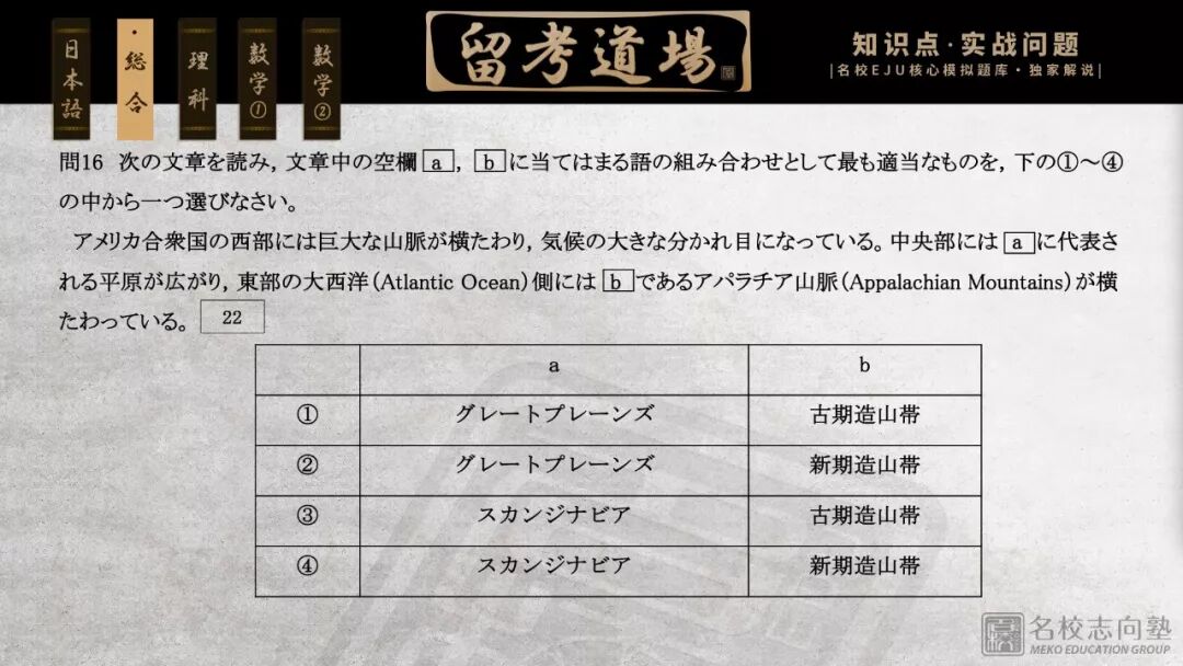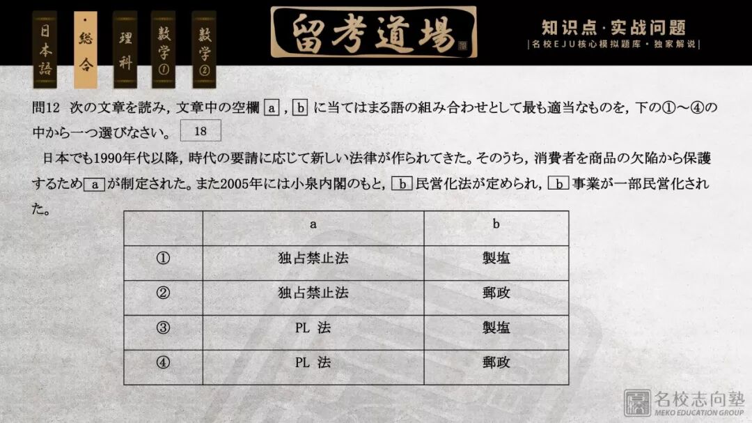 ①本道场为EJU知识点实战训练场,由名校志向塾精英级教研团队挑选经典真题供各位道场弟子们练手,并在后台附上讲解视频为大家答疑解惑