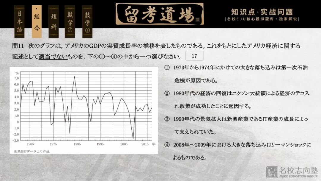 本次道场的训练内容将围绕“美国GDP实际成长率推移”、“日本民营化历史”、“日本雨温图”等话题详细展开——