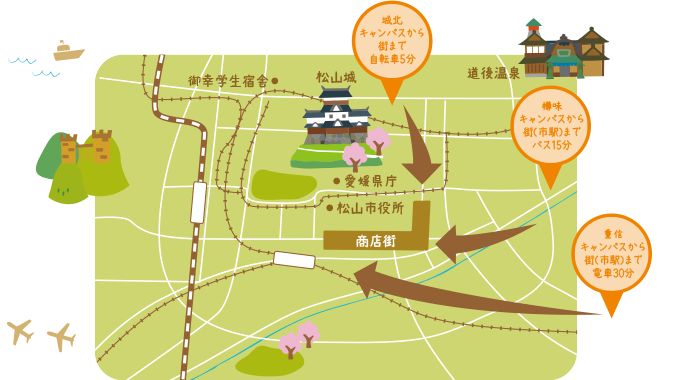 受到了特别奖的鼓励,冈山大学也铆足了劲儿,势要在推进SDGs上下更多工夫。于是,在今年8月,“Society5.0”计划面世——冈山大学表示,预计在2021年4月完成工学部和环境理工学部的再编成。届时,将新设建筑学教育项目,在情报、电子、数理系的专攻中的AI、大数据、IoT教育也将全面升级。详见下图。*冈山大学society 5.0 (图片来源于冈山大学官网)(截止日下午五点必着,但邮送日期截止至1月29日消印有效)可用留考成绩:2019年度实施的留考(出题语言仅限日语)经济学部、工学部、环境工学部环境物质工学科需要提交托福或托业成绩*经济学部可提交的托福成绩包括托福IBT、托福PBT*环境工学部环境物质工学科可提交的托福成绩包括托福IBT、托福ITP唯二的文科学部——文学部和经济学部校内考科目比较常规,文学部是外国语(英语)+国语(含古典)+面试;经济学部则是小论文+面试。而理科学部的校内考科目也有迹可循。基本上理科、数学和面试是逃不掉的。农学部、齿学部、环境理工学部要考英语;而医学部、工学部和齿学部还有小论文。查看时间表可以发现,对于报考理学部、工学部、医学部、齿学部的同学,由于这几个学部校内考科目较多,要做好从早上9点一直考到下午6点的准备。在我们的印象中,面试一般是校内考的最后一关,而冈山大学则非常不同,各学部学科面试科目的时间不同,有在最后考的,也有一上来就考面试的学部(例:环境理工学部环境数理学科、环境物质工学科)。因此考生需先确认报考学部面试科目的顺序,调节心态非常重要。四国地区最大的综合大学,爱媛大学,位于爱媛县松山市。