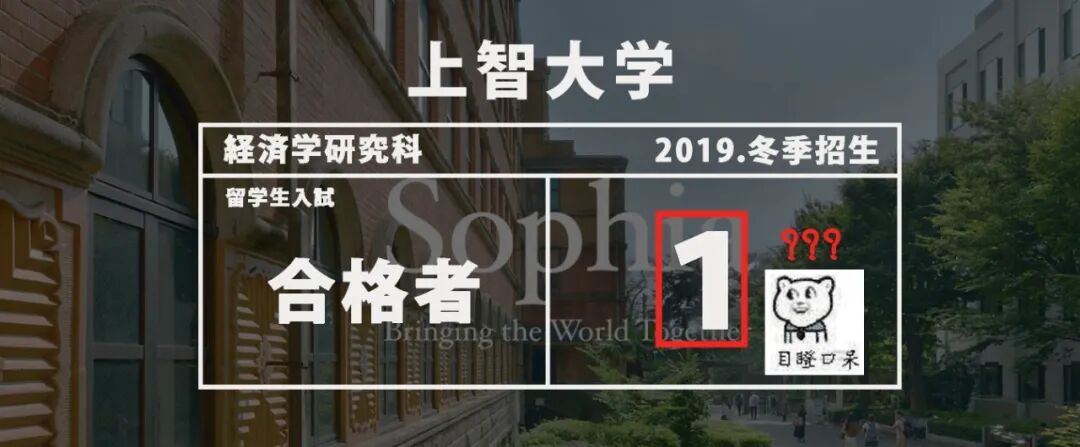 更刺激的是,我们大胆的在这里做一个预测:这位优秀的选手可能同时也合格了更优秀的大学,然后放弃入学。让我们拭目以待今年上智经济研究科的入学人数!(要是打脸了小编今年将不再做任何预测/(ㄒoㄒ)/~~)