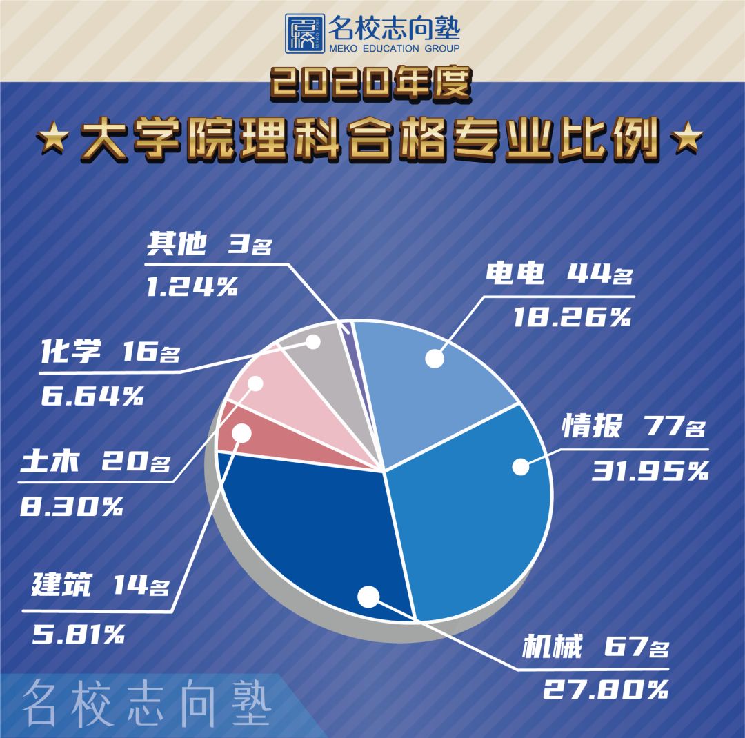 ***以上名单所有学员均为签约学员,不存在任何购买合格实绩行为,短期(1个月)学员不包含在此名单。首先在此恭喜大家顶住疫情压力,合格心仪的院校。ご合格、おめでとうございます!今年又是名校志向塾丰收的一年,其中最值得一提的是,历年来的大热门,同时也是录取率相对最低的情报系,今年被名校志向塾的学员们全面斩获!在旧帝大的30名合格者中,有14名合格了情报系相关研究科,将近合格人数的一半!所有塾内学员中,情报专业合格学员高达77名!名校志向塾院理的一贯强项——机械类和电子电气类相关专业今年也依然发展强势。在录取人数整体偏少的情况下,共计67名学员拿到了机械类研究科的合格通知书!而塾内合格电子电气类专业的同学中,有一半以上拿到了一流国公立的合格通知书!此外,名校志向塾院理今年新开设了小班化的化学特训,在我们开设的第一年里,就接连不断传来喜报:斩获东大与京大合格者各1名,东工大合格者4名,其余一流国公立不计其数。私立大学合格抢眼程度自然也不相上下:TOP私立大早庆上理共合格50人!MARCH级大学共合格40人!