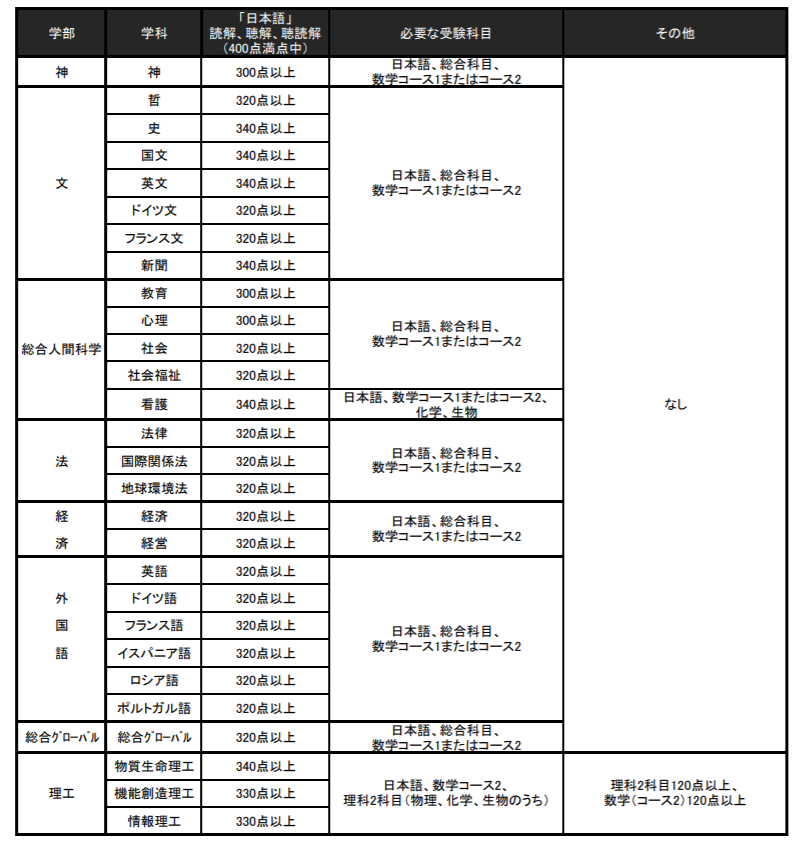 可报考学部:除国際教養学部以外全学部学科(并愿不可)