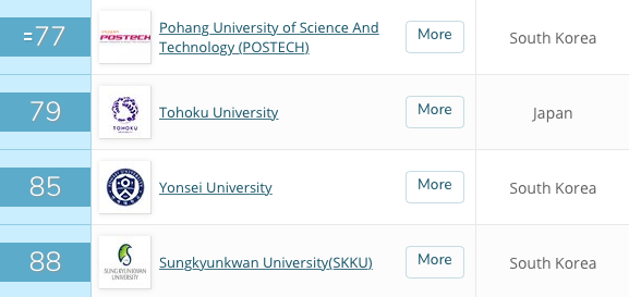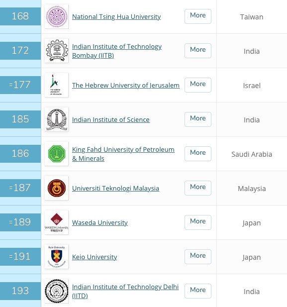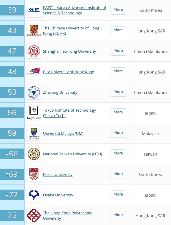 而近年来排名不断上升的东工大,今年也不负众望又升高了两名成为第56位,力压常青藤盟校布朗大学,直逼全球TOP50(笔者按:同时录取难度也逐渐登天逐渐玄学,东工大,不愧是你)。