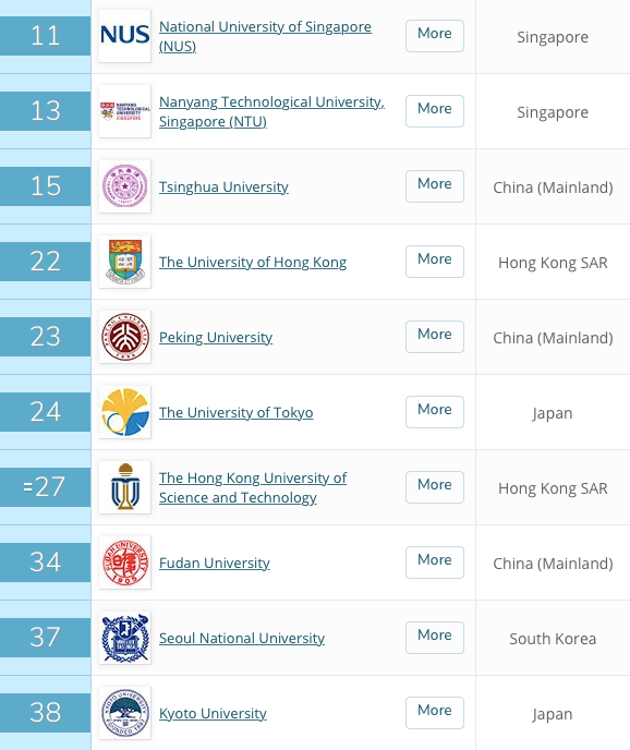 总体而言,对于几乎所有亚洲院校,2021年度都可以称得上是“大满贯”。早在最新QS排名发布当天,不少新闻媒体就报道称,2021年度的排名是有史以来亚洲院校上榜最多的一次。