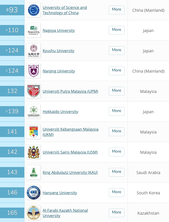最后,虽然笔者只截取了QS排名中日本TOP10的院校,但其他许多日本院校在榜单上同样交出了亮眼的答卷。例如紧随庆应之后的筑波大学较上年度上升5位、广岛大学较去年上升13位等等。