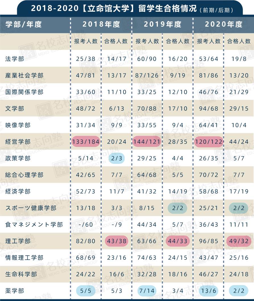 由于立命馆和同志社同样设有前后两期入试,如此调整可用留考成绩的范围着实给了不少考生当头一棒——大多数未持有有效留考成绩的考生将无缘前期入试。如此一来,后期入试又将成为恐怖的修罗场,迎来报考人数的大幅上涨。