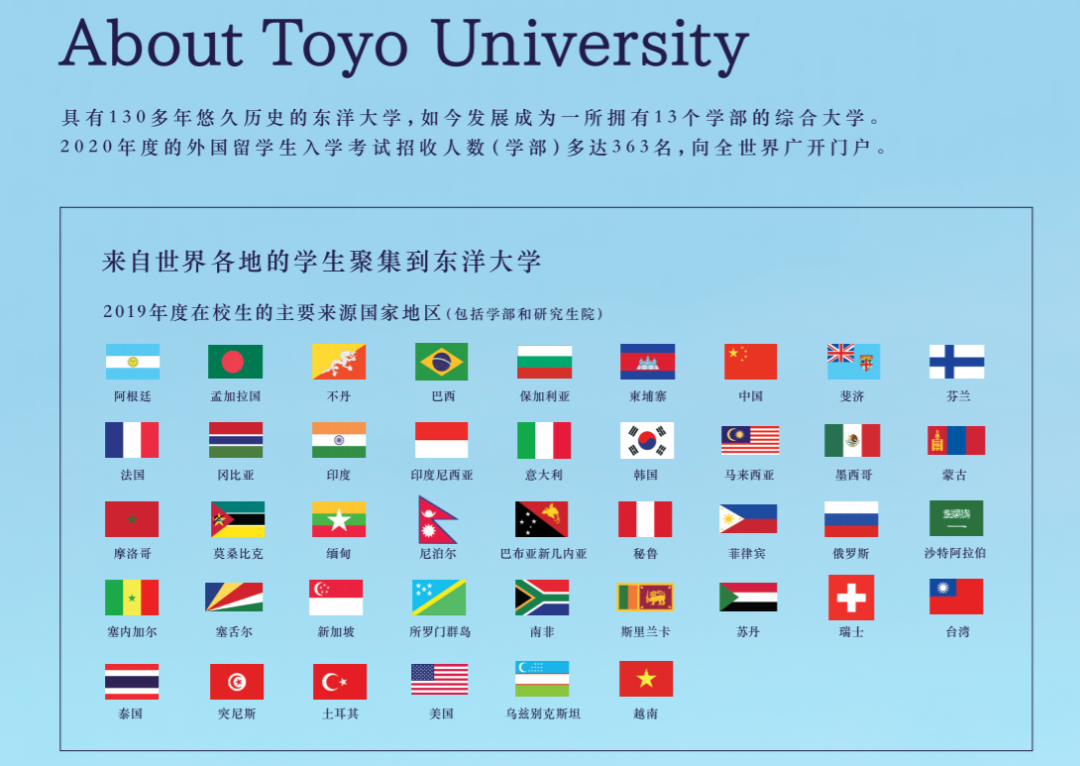 2021年度东洋大学外国人留学生入试要项尚未发布,各位可以通过以下的出愿TIPS了解东洋历年的考学情况及前一年度的出愿条件,为2021年度的出愿做好准备。