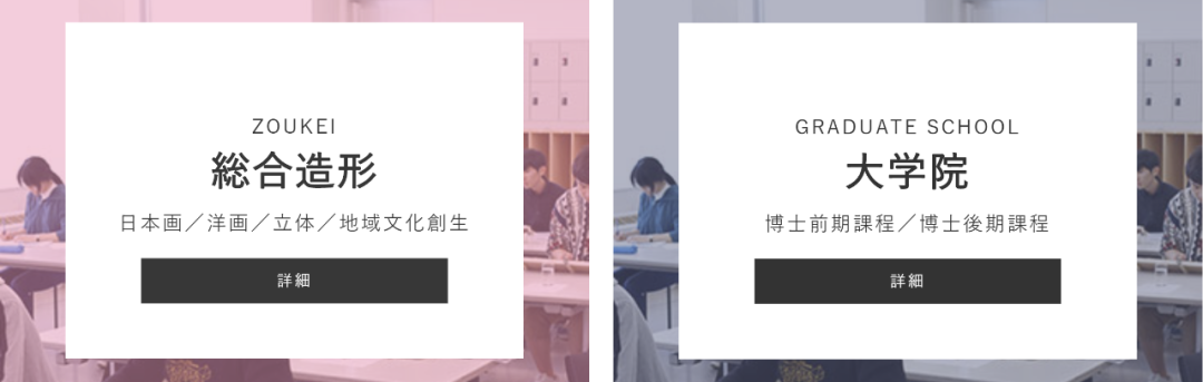 文星艺术大学设有艺术学部和大学院,其中艺术学部又分为了三大类专业,包含多个专攻: