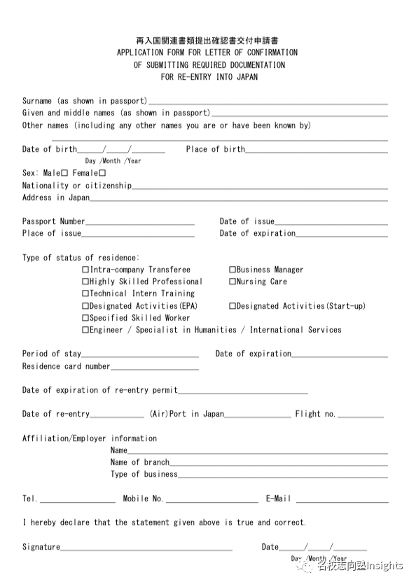 目前,再入境日本除了必备的护照与在留卡之外,还需要额外准备以下两种文件: