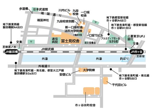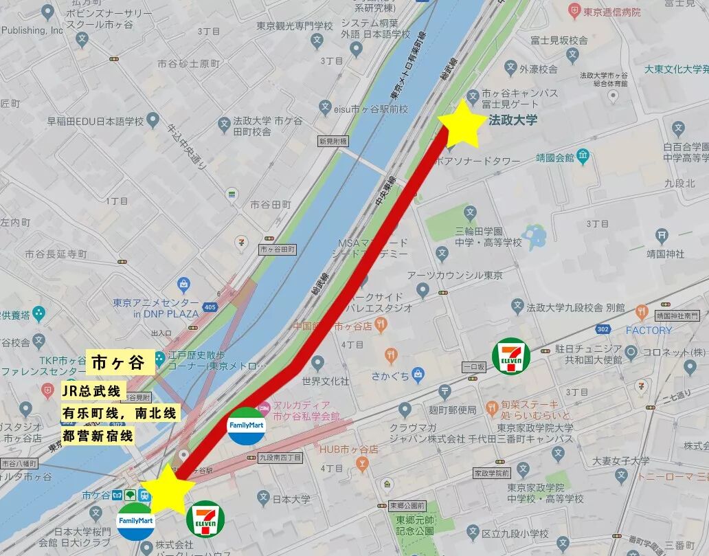 ① JR総武線「市ヶ谷」站或飯田橋」站下车,徒步约10分钟
