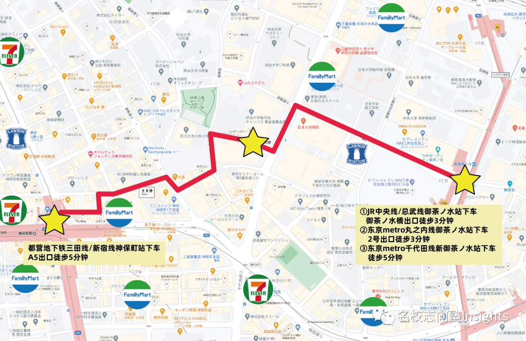 ②东京メトロ半蔵門線/都営三田線/都営新宿線「神保町」站,A8出口徒步5分钟