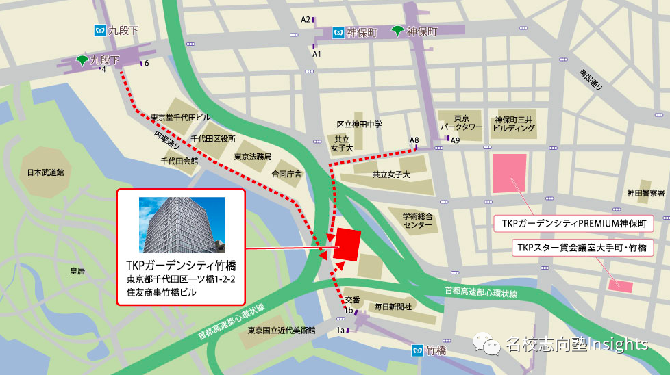 东京メトロ東西線/半蔵門線/都営新宿線九段下」站,6号出口徒步7分钟