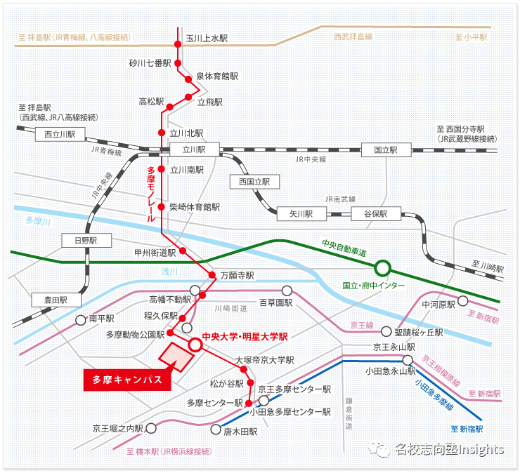 多摩モノレール中央大学・明星大学」站下车直达,徒歩0