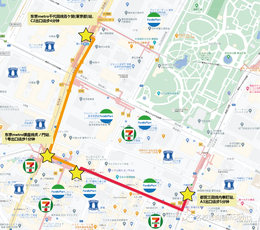②东京metro千代田线「霞ケ関」站,C2出口徒步4分钟