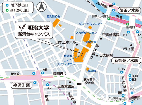 ①JR中央線/総武線御茶ノ水站」下车,御茶ノ水橋出口徒步3分钟