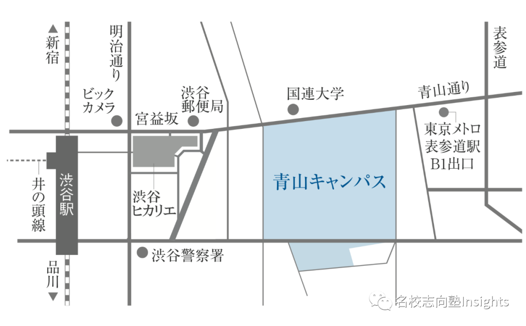 在東京メトロ銀座線・千代田線・半蔵門線「表参道」下车,走B1出口徒步约5分钟到达大学正门