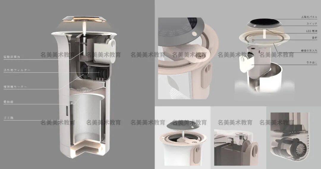 日语方面就是正常在学,作品方面的话其实就是在最后考试递交材料之前把东西都做出来,也就是正常的准备工作。叶同学:去年没有参加考试,因为去年我来的时候还没有日语成绩,所以说考不了。我去年七月那个时候参加了一次日语考试,没合格N2,所以说当时就没有日语成绩,就没有办法考。叶同学:对,正经考试只考过这一次。但是我后面准备了很多所一般一点的学校,因为把一般的学校放在前面也不现实嘛,就算一般的考上了也还会想着要再冲一下好学校,不如直接把好学校当作第一所去试试。叶同学:武藏野我考的是中原老师嘛。跟中原老师一共面对面相谈了一次,网上相谈了两次,邮件大概发了三四次。在考试前和教授做过很多的交流,跟东造的老师日大的老师和大阪艺的老师也都聊过。但参加考试这是第一次。名美:也是默默地做了很多努力呢,武藏野是你的第一志愿吗?后面还考其他学校吗?叶同学:是第一志愿。后面应该就不考了,准备入学了。因为我感觉我的日语水平比起别人而言就是比较差,所以说基本上在准备完作品以后,我所有的时间都在准备日语和面试。包括我之前跟老师相谈的时候,我问老师对我的作品或研究计划有什么建议,老师说如果说建议的话,就是建议你多学日语。所以说我觉得我最大的困难就是日语吧,就一点点按部就班学习。名美:现在日语大概是个什么样子呀?除了正常的日语学习,你有没有什么自己的学习方法呢?叶同学:现在的日语就是我感觉正常交流,可能还不是那么自由吧。还是需要学习,入学前的接下来半年还是要一直学日语。学习方法的话,我也没有什么特别的方法,除了基本的学习就是看一些日本的影视作品之类的吧。叶同学:首先最开始我的那个执念也不是很深,我不是说一定要进武藏美多摩,其他的学校我也都在准备。第二个是我也知道这种水平的学校考试很难,而且也挺看缘分的。所以说我也只能做我能做的准备,至于能不能考上就只能看看缘分了。叶同学:我觉得我这次之所以能考上,主要还是因为我的作品比较能体现能力吧,作品质量比较好。因为我的作品其实不仅仅是平时的作业,还有一些是我专门去以一些实体产品为基础,加以创作的一些东西。我一直着重的去完善这些作品,让老师从这些作品上了解我的设计能力。其实我花了很多时间去做准备,这方面的工作大概花了一两年的时间。所以说,可能我在这方面是比较有优势的吧。但是我也有劣势,就是日语不好。叶同学:我一共有三件主作品和九件小作品,然后三件主作品里面的两件主作品是有实物模型的。因为我的作品是系列的,所以总共的实物模型大概是在四五个吧。完成度上,三个主作品比较完整,完成度比较高,九个小作品的话就是以作业为主的。名美:当天去考试不是提前先交作品嘛,大家能互相看到其他人的作品,你这个作品的量算多的吧。