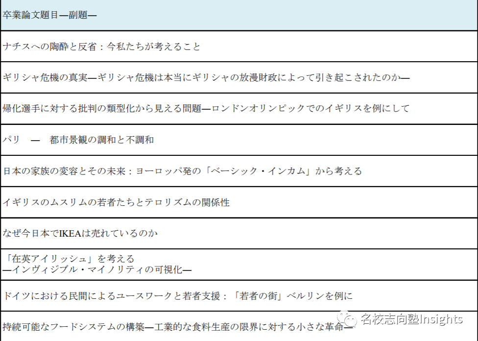 *グローバル地域文化学部ヨーロッパコース毕业论文题目一览
