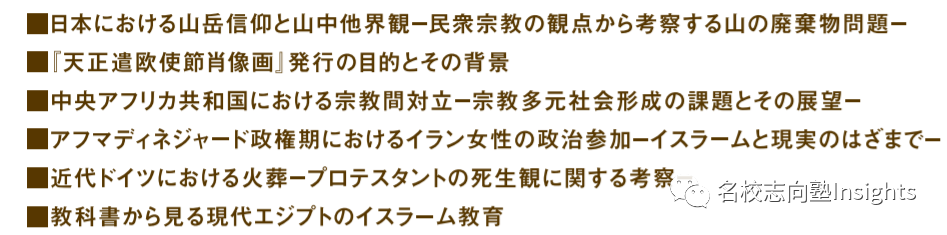 而根据毕业论文题目,也可看出神学部是将神学和历史学、文化学、教育学、哲学等学科的融合。但这还是要回归到最初的志望动机的问题:如果我要做这类研究,为什么不选择文学部/社会学部/教育学部等,而非神学部不可呢?