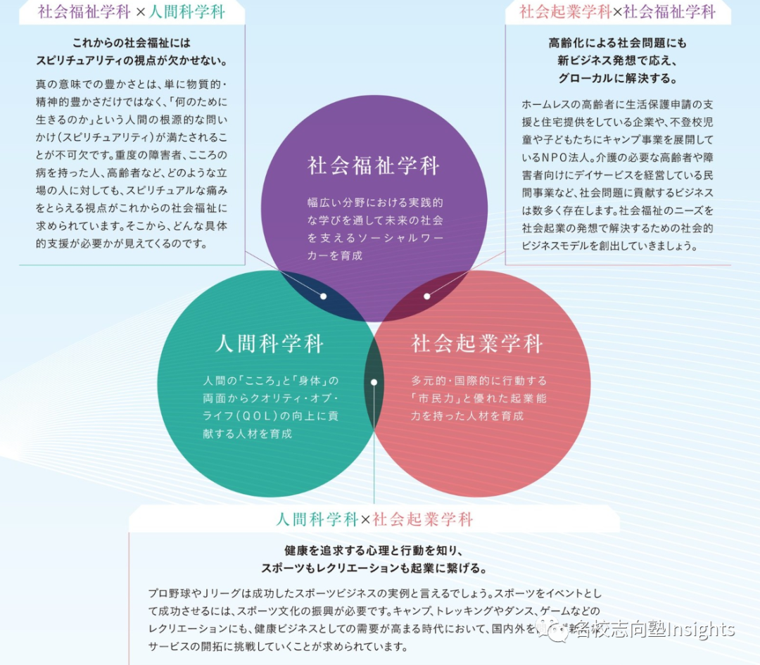 关学人间福祉学部除社会福祉学科外,还内含近年来大热的人间科学类学科,这类学科可能会吸引不少志望社会学部/文学部的考生进行并愿;其次,社会起业学科十分新奇,光看“起業”一词,就让人联想到经营学、商学、经济学等专业,该学科本身也是融合法学、经济学、社会学等基础学问的学际系专业,更设有海外实习/田野调查等学习项目,想必对于志望经济经营类专业的留学生也有一定吸引力。