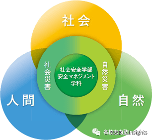 前者从劳动安全、企业的社会责任、风险管理等角度,以产业社会中多发的事故事件为研究对象,为社会、企业输出人才;后者的主要目标是为应对自然灾害,通过分析自然灾害的机能机制,研究防灾减灾的方法、复兴计划、行政机构的作用、公共责任等,为地域社会输出防灾减灾的专业人才。
