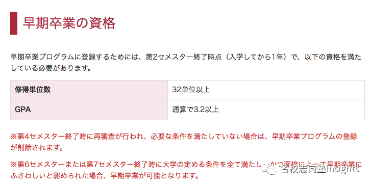可以看到,在校的三年内,该项目的学生每年都必须达到修32个单位以上、GPA在3.2以上的要求。每一年学年结束时都会进行重新考核,一旦审核不通过立刻从项目中移除。