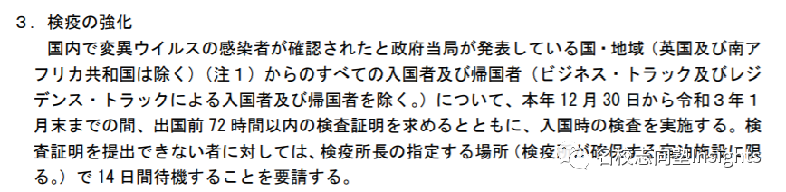 *该措施将于2020年12月30日0时起生效,对于今后被列入对象的国家/地域的强化检疫,将在被指定日的4日以后的0时开始生效。