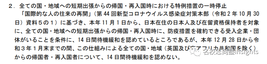 变化2:暂时停止对以短期出差为目的出国者在回国时的特别措施