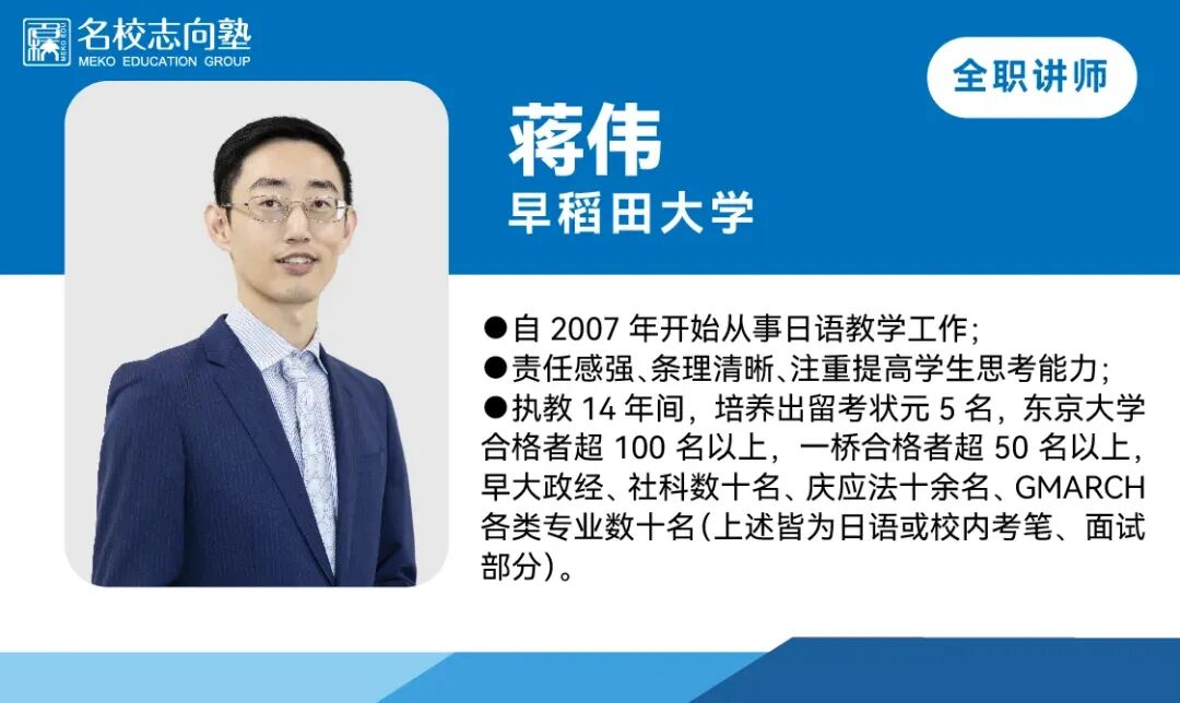 “看我的EJU成绩也知道,这个成绩并不算出挑,要想考进一桥还需要努力。主要是跟着蒋老师的一桥大学对策课,最后就顺利考上了。”
