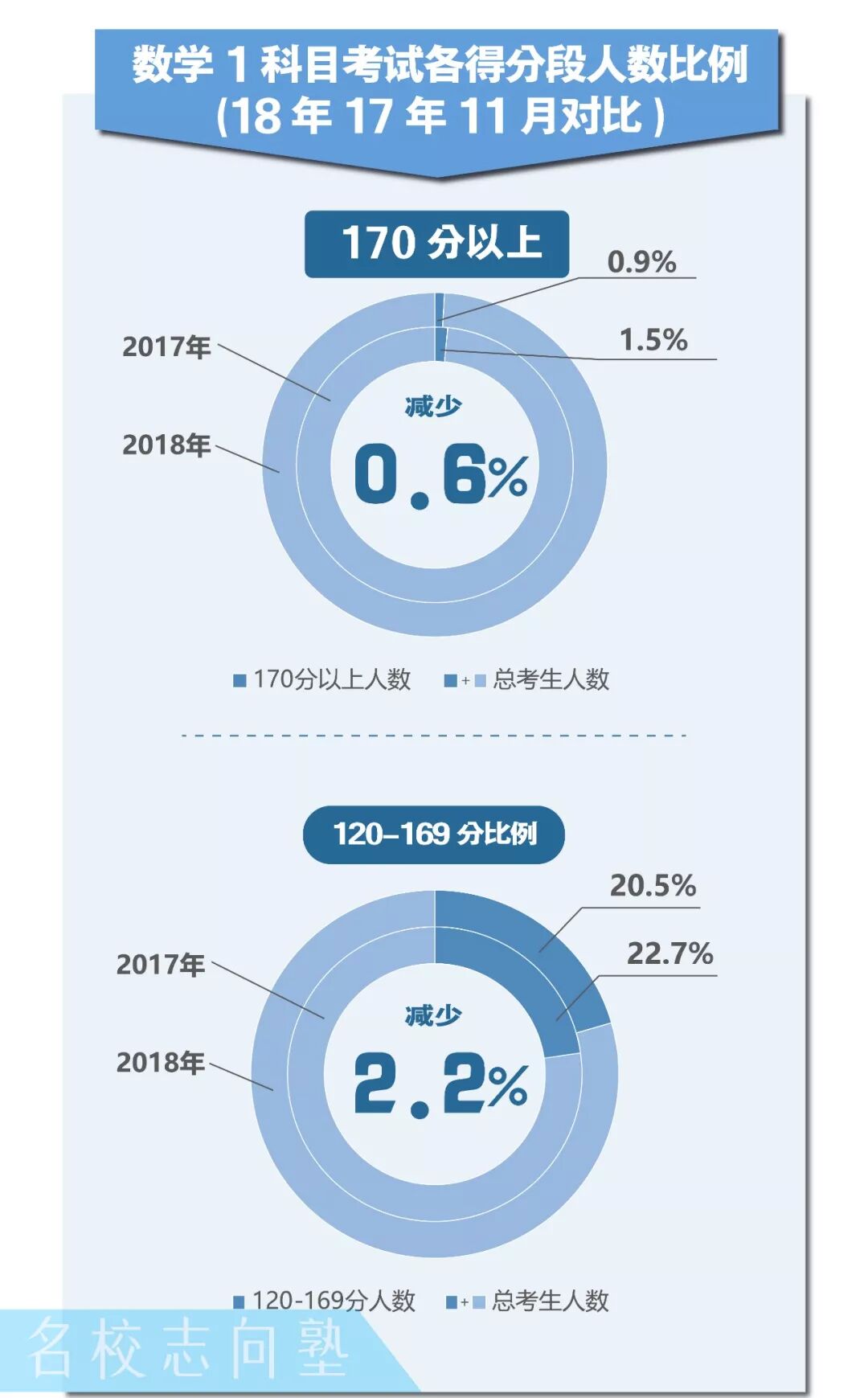 事实上,从历年的成绩规律与特点在这次考试中也得到了充分的体现,或者说更胜往昔:日语和综合科目由于其知识点相对固定已经很难拉开差距,因此数学的地位或将大幅上升。