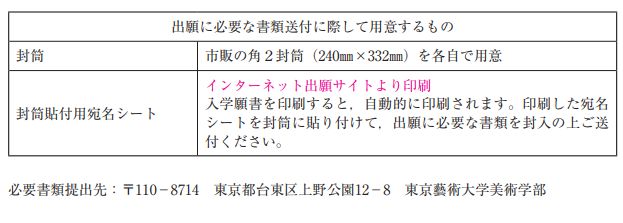 4.  东京艺术大学网站上出愿后彩色打印出来的信封裱纸,需要贴在邮寄的信封表面