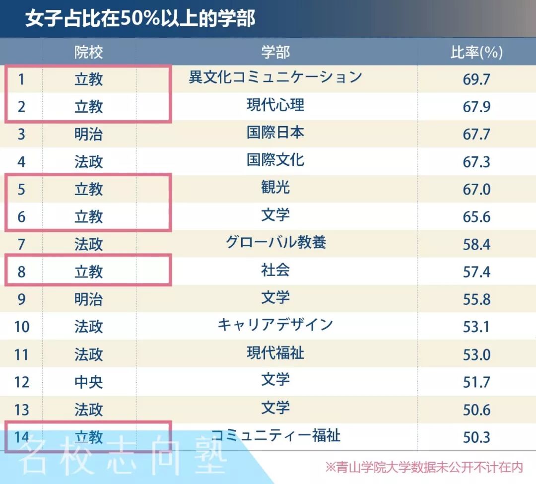 讲到最受女生欢迎的院校,原本最先想到的是青山学院大学和立教大学。他们又在这场争夺战中表现如何呢?