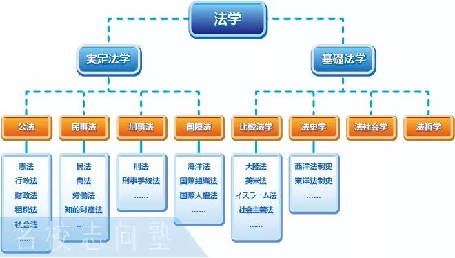 而且,以上智大学法学部(地球环境法学科)与中央大学法学部(国际企业关系法学科)为代表,顺应国际社会的发展和需要,除了法律学科和政治学科,一部分大学还专门设立了以培养国际性人才为目标的第三学科。(下图)