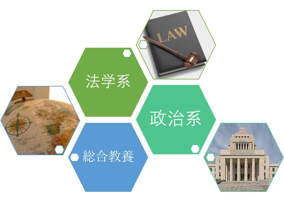 法学部的学问领域,可是说是非常广泛,与其他社会科学也有着很紧密的联系,从大家耳熟能详的基本六法(宪法、民法、刑法、商法、民事诉讼法、刑事诉讼法)、经营法学、企业法学、行政法学这样的具体研究法律的学问开始,到政治学、经济学、国际关系学、社会学、统治学、安全保障论、传播学、伦理学、哲学等等,乍看起来与法律并没有很大关系的学科,也在法学部生的学习范围之内。
