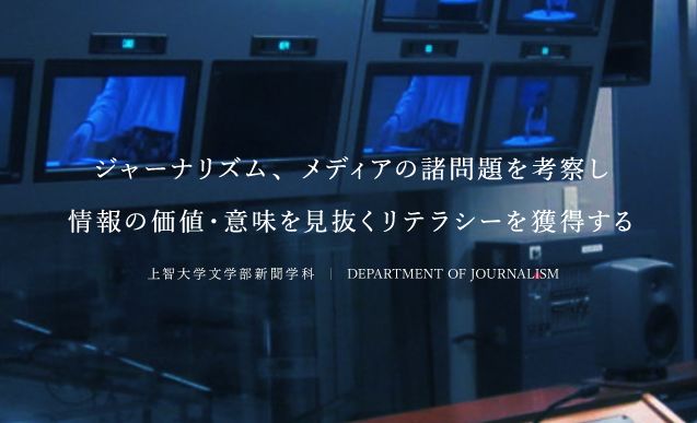 上智大学文学部的新闻学科作为日本少数可以全面学习传媒的地方(新闻,放送,出版,电影,广告等),甚至在校园内部拥有自己的电视局(上课用)。此外,上智大学新闻学科的就业竞争力相当强势。作为日本传媒界的扛把子之一,每年4成以上的学生在毕业后都从事传媒相关工作(新闻,出版,放送,广告),剩下的学生中还有很大一部分从事新媒体工作。